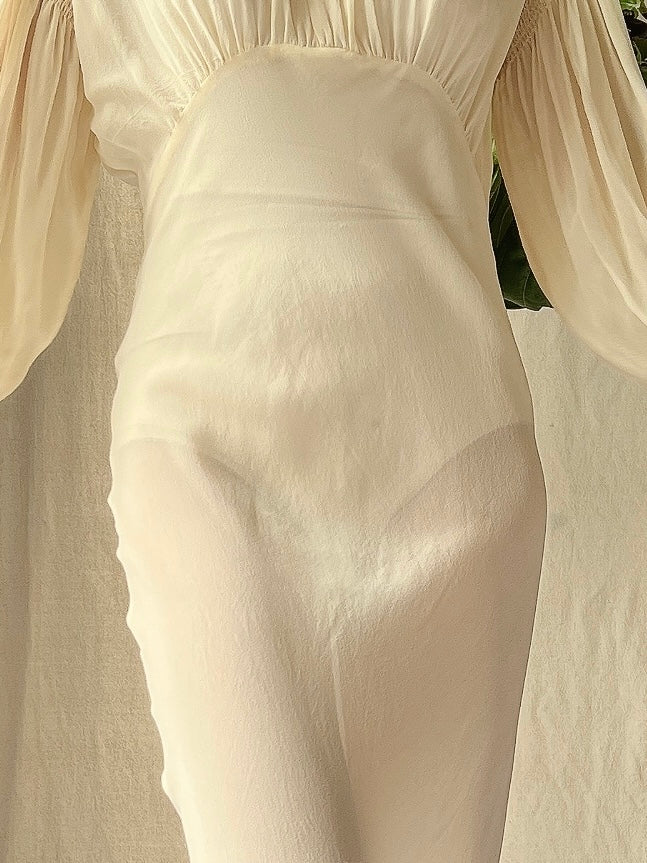 MEASUREMENTS: Bust: up to 34” Waist: 27” Hips: free Length: 58” Fits-Like Estimate: S