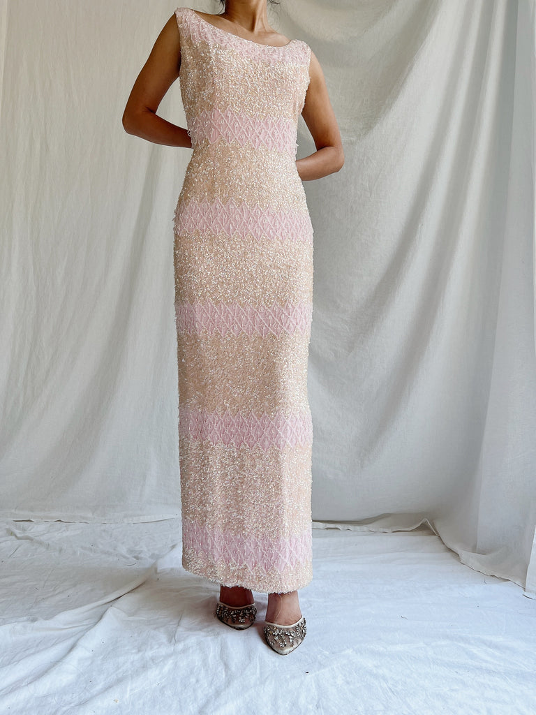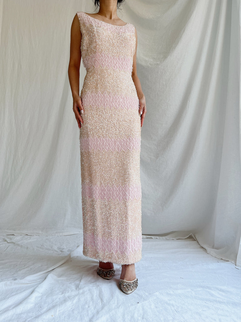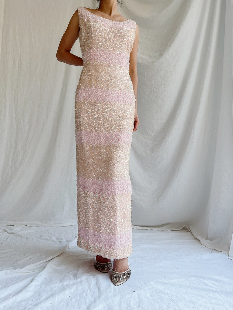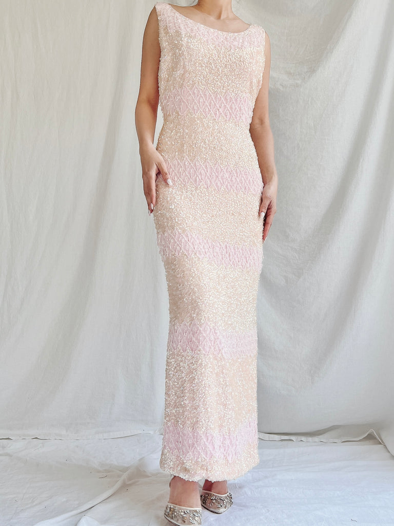 • DESCRIPTION:1960s Pink Silk Sequins Dress - S