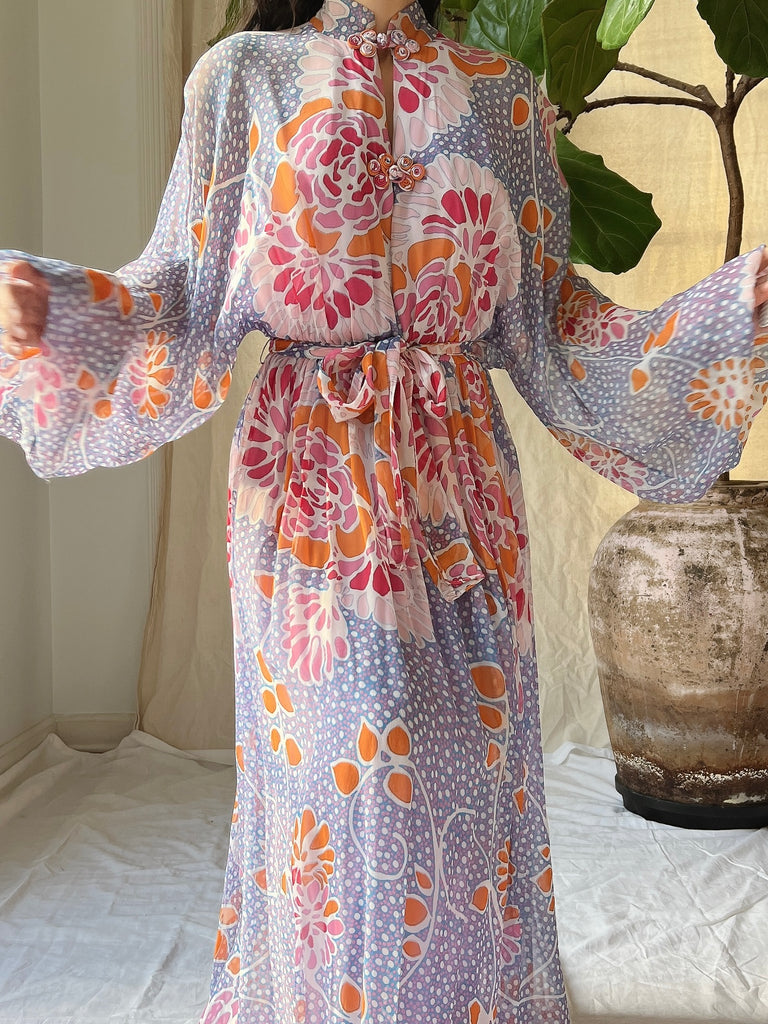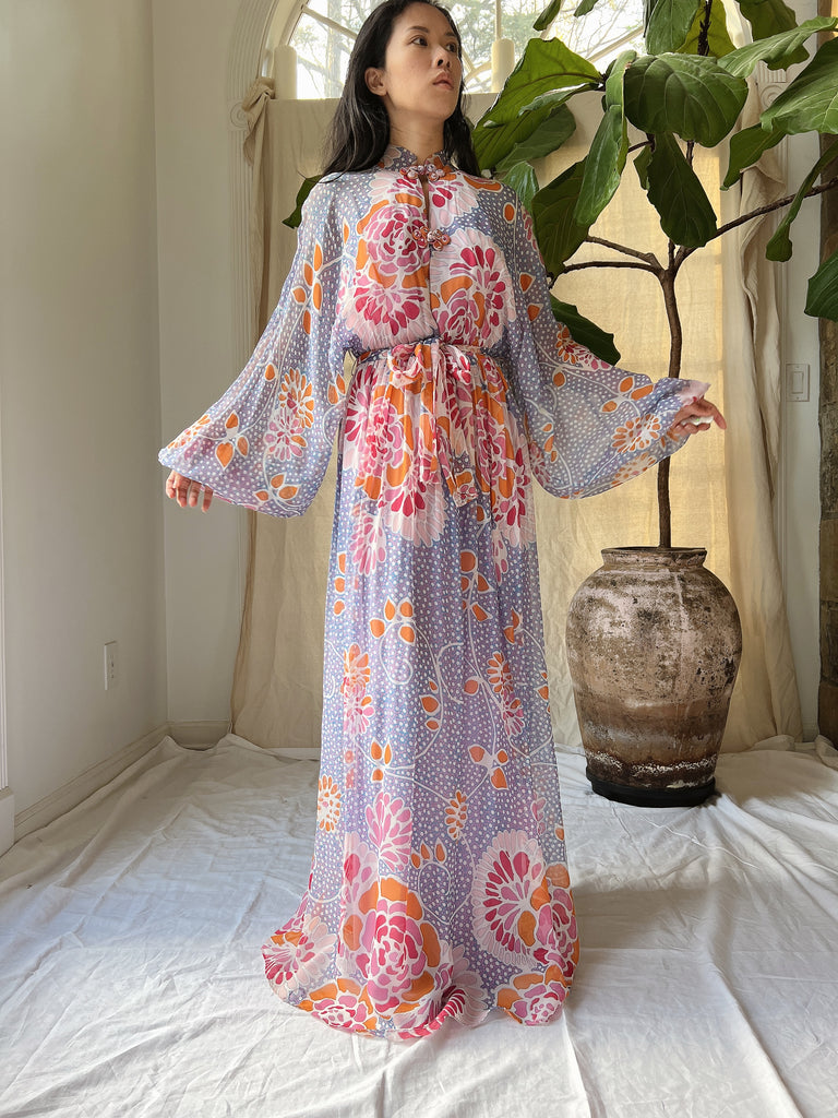 DESCRIPTION:1970s Albert Capraro Chiffon Poet Sleeve Gown - S/M
