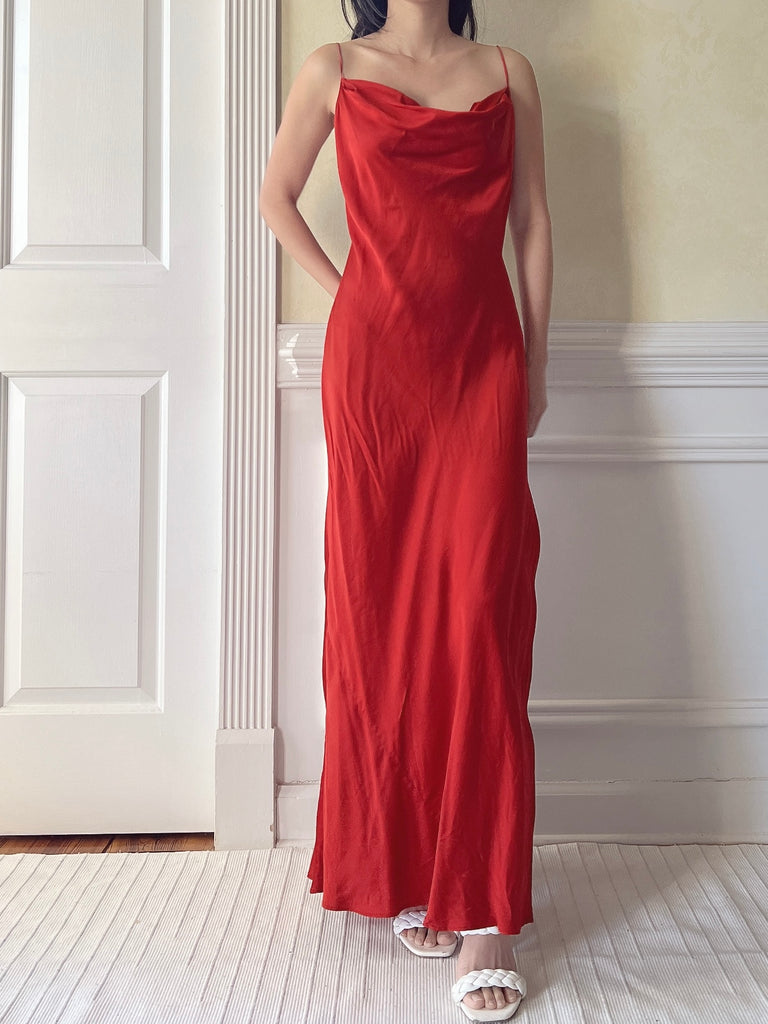 Vintage Red Silk Cowl Slip - M