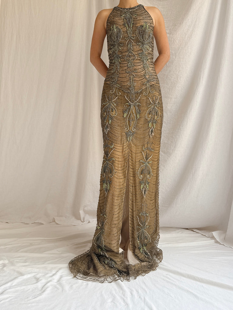 • DESCRIPTION: Vintage Halter Beaded Dress - S/4
