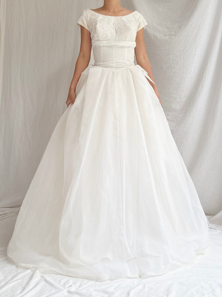 • DESCRIPTION: 1950s Silk Organza and Lace Gown - XS