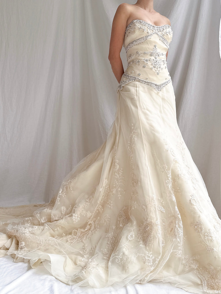 • DESCRIPTION: Vintage Badgley Mishka Couture Silk Embroidered Gown - M/6