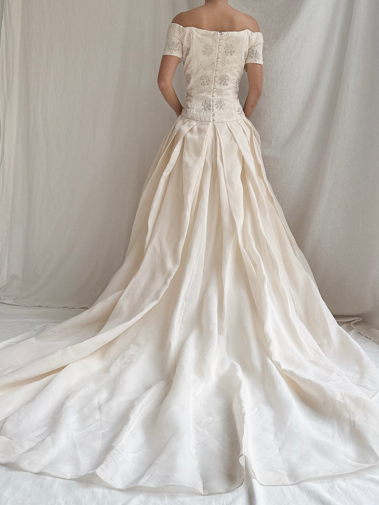 • DESCRIPTION: 1990s Monique Llhuilier Silk Organza Gown - M