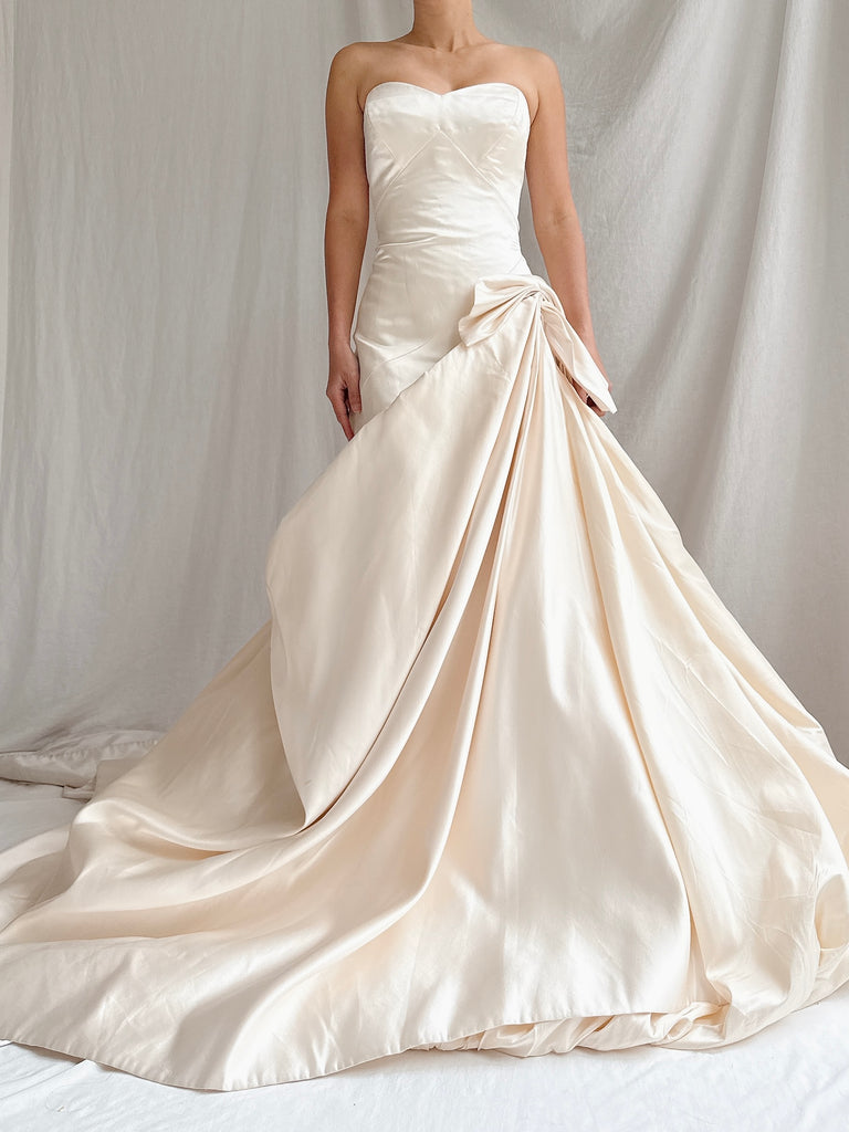 • DESCRIPTION: 00 Ulla Maija/Anna Maier Silk Draped Gown featuring layers of silk with back zipper closures.