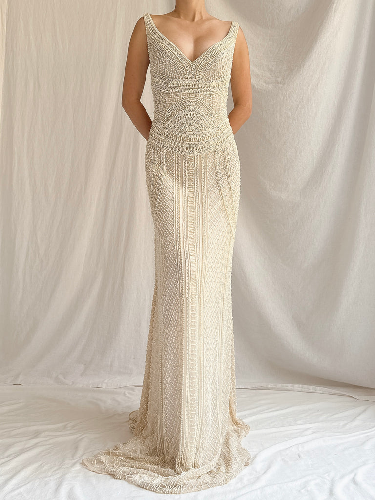 • DESCRIPTION: 00 Pearl Beaded Gown - L/XL 14