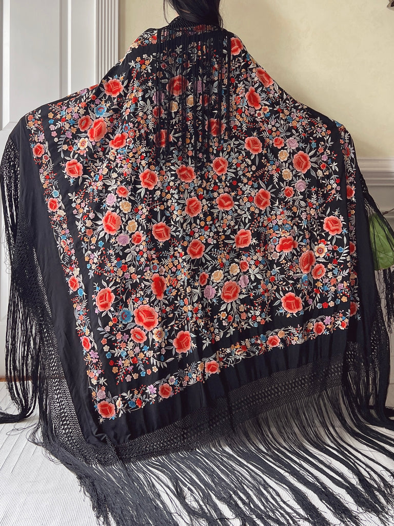 Antique Silk Embroidered Shawl - OSFA