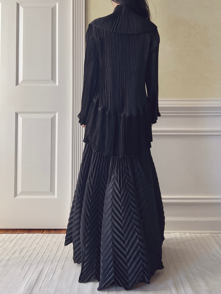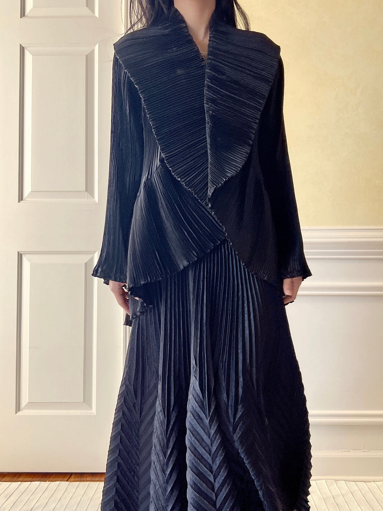 DESCRIPTION: Vintage Black Mashiah Ruffle Pleated Jacket with long sleeves.